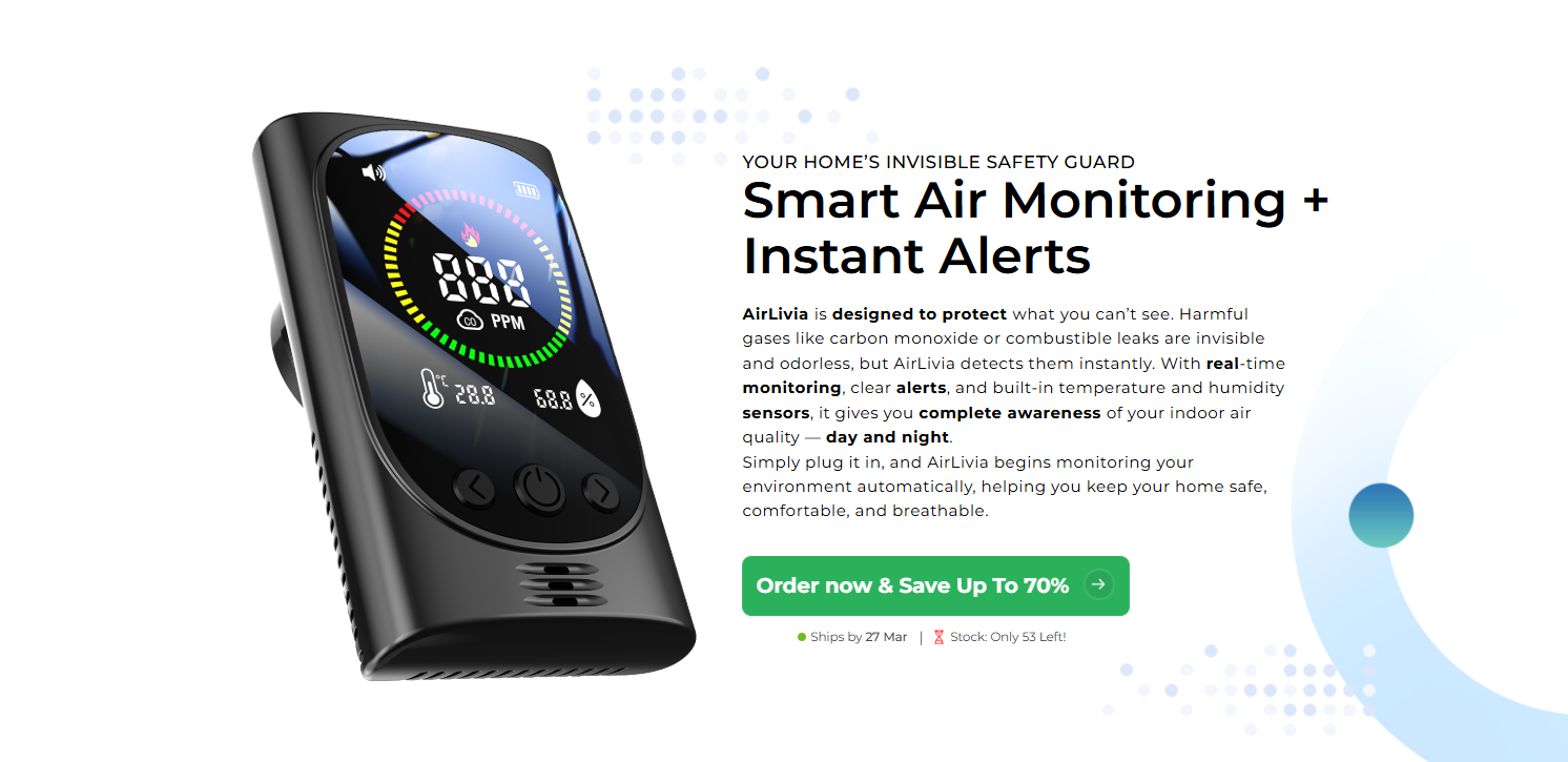 When it comes to home safety, what you can’t see, smell, or hear is often the biggest threat. Carbon monoxide, natural gas leaks, and poor indoor air quality can develop silently, putting your family at risk without any warning. That’s where AirLivia steps in—a compact, plug‑and‑play device designed to be your home’s invisible safety guard. In this detailed AirLivia review, we’ll explore how this all‑in‑one air monitor works, what real users are saying, and whether it’s the right addition to your home.